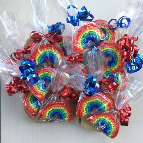 Onze Regenboog sleutelhangers zijn leuk om aan de boekentas te hangen maar ook zeker een perfect uitdeel geschenkje . Daarom hebben wij de mogelijkheid gemaakt dat deze per 5 kunnen besteld worden aan een actie prijs en ze worden afzonderlijk ingepakt zo dat ze coronaproef zijn.